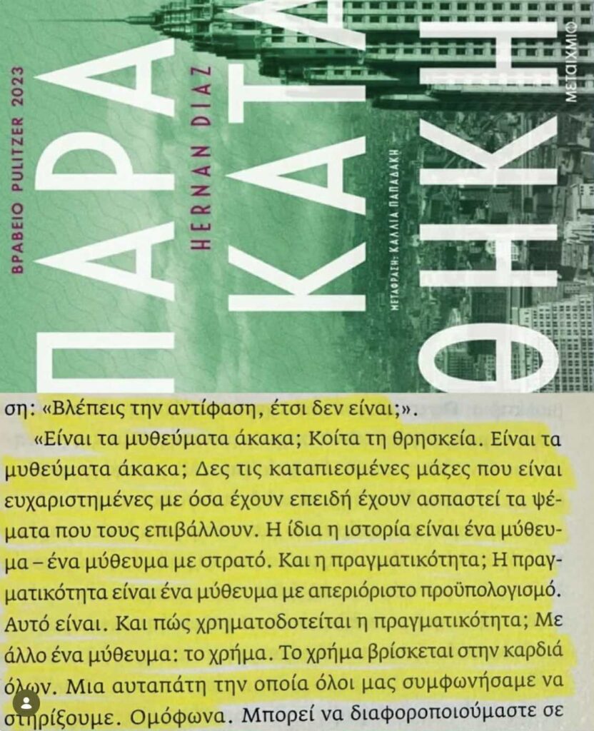 Η μάλλον άλλαξα άποψη. Η παρακαταθήκη ήταν για μένα το βιβλίο που από την αρχή της χρονιάς που το διάβασα, είχα αποφασίσει πως θα είναι στον Άσσο μου για το 2025, ο Ντίαζ είναι ένας απίστευτος γραφιάς που για μένα έκανε την υπέρβαση της χρονιάς, πιάνεις σαν αναγνώστης ακόμα ένα βιβλίο στα χέρια σου, ο κανόνας λέει θέλεις 100 σελίδες για να καταλάβεις αν κάτι σου αρέσει ή όχι, σίγουρα θες 100 για να γνωρίσεις τους χαρακτήρες, έλα που εσύ αυτό το καταλαβαίνεις από τη σελίδα 30, ναι αυτό θα είναι καλό, αυτά μου αρέσει να διαβάζω, και οι σελίδες προχωράνε και οι ιστορίες τέμνονται, και κάπου εκεί στη σελίδα 200.