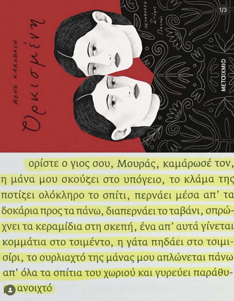 Αντί αναλυτικής κριτικής για την Ορκισμένη θα γράψω μονάχα αυτό. Ξεκίνησα να το διαβάζω στα καλοκαιρινά μου reading marathons στην παραλία του πενίνσουλα, μία Κυριακή πρωί φυλλομέτρησα την πρώτη του σελίδα, και μετά το ένα έφερε άλλο και δύο ώρες μετά το τελείωσα με την αίσθηση εκείνη που μόνο όσοι έχουν διαβάσει ένα καλό βιβλίο και δεν έχουν με ποιόν να το μοιραστούν έχουν, και λίγο μετά έπιασα με την άκρη του ματιού μου τη φίλη μου τη Μαριλένα και σηκώθηκα βουρκωμένος πήγα προς το μέρος της και της είπα «σταμάτα αυτό που διαβάζεις και πιάσε τώρα αυτό εδώ, στο χαρίζω».