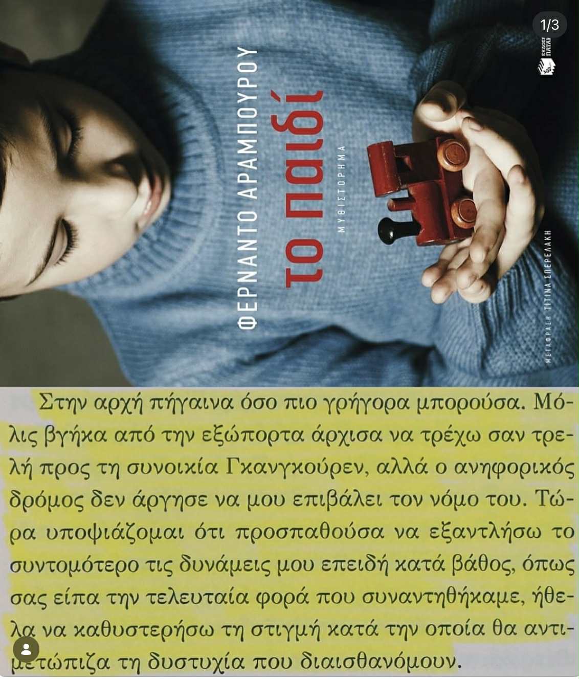 Λοιπόν. Δεν ξέρω τί να γράψω για «το Παιδί» θα πω όμως μία κουβέντα για τον Αρουμπαρένα. Είχα διαβάσει δύο βιβλία του, την Πατρίδα, και τα Πετροχελίδονα τα είχα μισά, δεν τα τελείωσα όχι επειδή έφταιγε αυτός, είμαι χαμένη υπόθεση, διαβάζω 10 βιβλία ταυτόχρονα, καπακώνουν το ένα το άλλο και ξεχνιέμαι δε φταίω, αλλά μόλις «το Παιδί» του έπεσε στα χέρια μου, στο οποίο η πρώτη μου παρατήρηση είναι «Για όνομα της Παλλάδας, πόσο άσκημο εξώφυλλο» αποφάσισα κυριολεκτικά λόγω μεγέθους πως θα το «ξεπέταγα» μέσα στο σαββατοκύριακο.