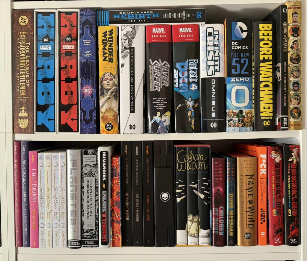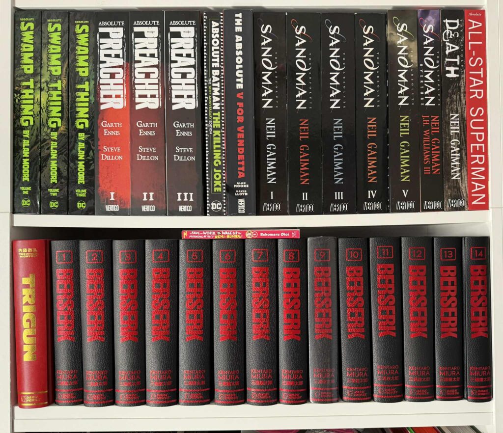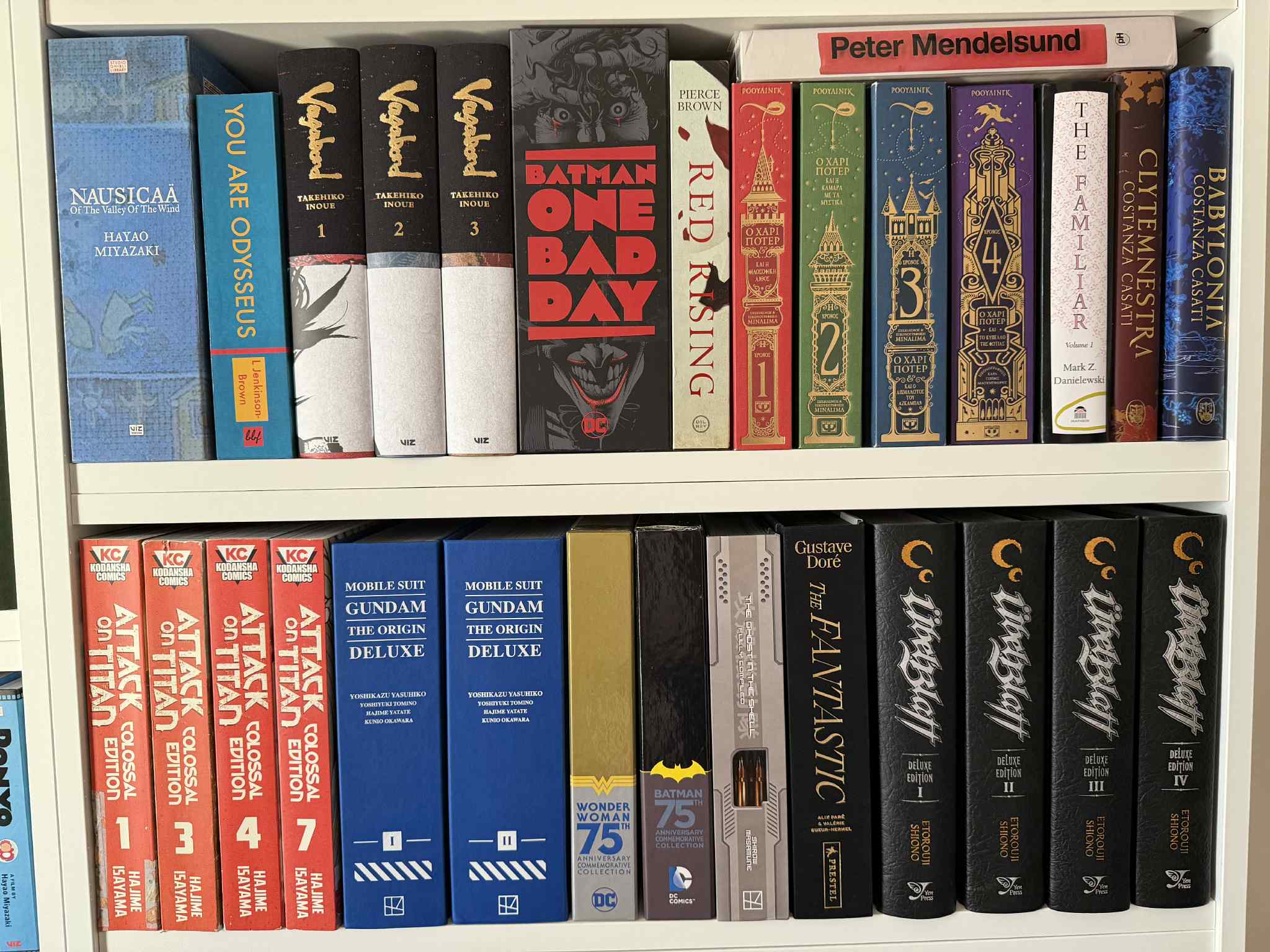 Και ξανά NAI oπως βλέπετε στην παραπάνω φωτο, η χρονιά που μας πέρασε ήταν η χρονιά που έκανα τη βιβλιοθήκη μου με τα κόμικς και τα manga ΟΠΩΣ ΑΚΡΙΒΩΣ πάντα την ονειρευόμουν. Είμαι πολύ τυχερός, δεν μπορώ να πω, αλλά το χόμπι πέραν από την τύχη θέλει και πάρα πολλές θυσίες, πλέον όμως έχω ένα δωμάτιο που κάποιος μπαίνει και από τα χρώματα κλείνει τα μάτια σου για να μπορέσει να συλλάβει το μέγεθος, και ναι εννοείται θέλω κι άλλα, αλλά ολοκλήρωσα τη ΒΑΣΙΚΗ συλλογή μου αναφορικά με το Berserk και το Vinland Saga και τις Absolute εκδόσεις που δεν ήθελα να λείπουν από τα ράφια μου, ναι τα έχω διαβάσει και τα δύο μέχρι τη μέση, αλλά δεν ήθελα να μου «καταλύσουν» που λέγαμε μικροί οπότε τα άφησα μεσάτα. Δυστυχώς το 2025 δεν ήταν η χρονιά μου αναφορικά με τις περιπέτειες του Λούφι, του ΤονιτονιΤσόπερ και της Νάμι, δεν κατάφερα δηλαδή παρά να διαβάσω δύο μονάχα τεύχάκια από το One Piece, μου υπολείπονται δηλαδή καμία 130αριά, αλλά ποιος βιάζεται, καλά να είμαστε και όρεξη να έχει ο Oda να γράφει και να ζωγραφίζει.