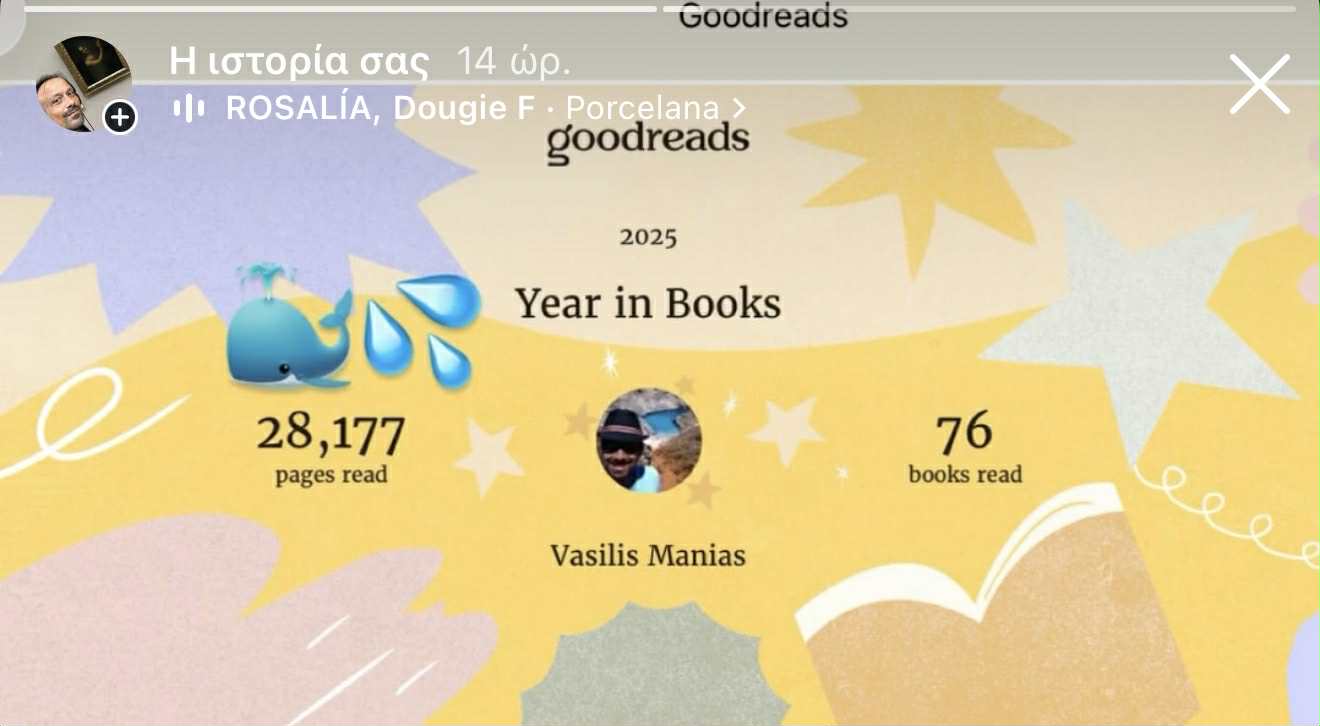 Φέτος είναι η χρονιά 9η η συνεχόμενη, (ναι σχεδόν συνεχόμενη, συμπεριλαμβανομένου του προπέρσινου διαλείμματος) αλλα και προφανώς καθοριστική μιας και βρίσκεται λίγοοο πριν από τη 10η, αν όλα πάνε κατόπιν προγράμματος, το 2026 θα είναι μία πολύ διασκεδαστική χρονιά για το project vasilakobooks, αλλά για αυτά θα μιλήσουμε και παρακάτω. Τί παρακάτω δηλαδή εδώ θα σας τα πω, είχα γράψει ακριβώς το ίδιο πέρσι, αλλά δυστυχώς το podcast (ναι αυτό προσπαθώ να κάνω να γίνει) που ΣΙΓΟΥΡΑ ΟΜΩΣ θα βγεί μέσα στο 2026 (έχω γράψει στο χαρτί 8 ολόκληρα επεισόδια), δεν είναι ακόμα όπως ακριβώς το θέλω, και όσοι λίγοι με ξέρετε, ξέρετε για τί καράβι μιλάμε, αν δεν είναι στο κουτάκι που το χω κομμένο και ραμμένο ακριβώς όπως το έχω στο μυαλό μου, καλύτερα να το καθυστερήσουμε λίγο ακόμα, μέχρις ότου γίνει έτσι που πρέπει.